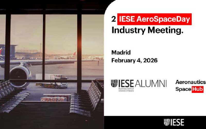 El IESE volverá a reunir a la comunidad aeroespacial el 4 de febrero de 2026 en su campus de Madrid, en una nueva edición del Aerospace Day. Tras la excelente acogida del año pasado —con más de 250 asistentes—, la escuela prepara una jornada pensada para compartir ideas, experiencias y perspectivas sobre los retos que marcarán el futuro del sector.
